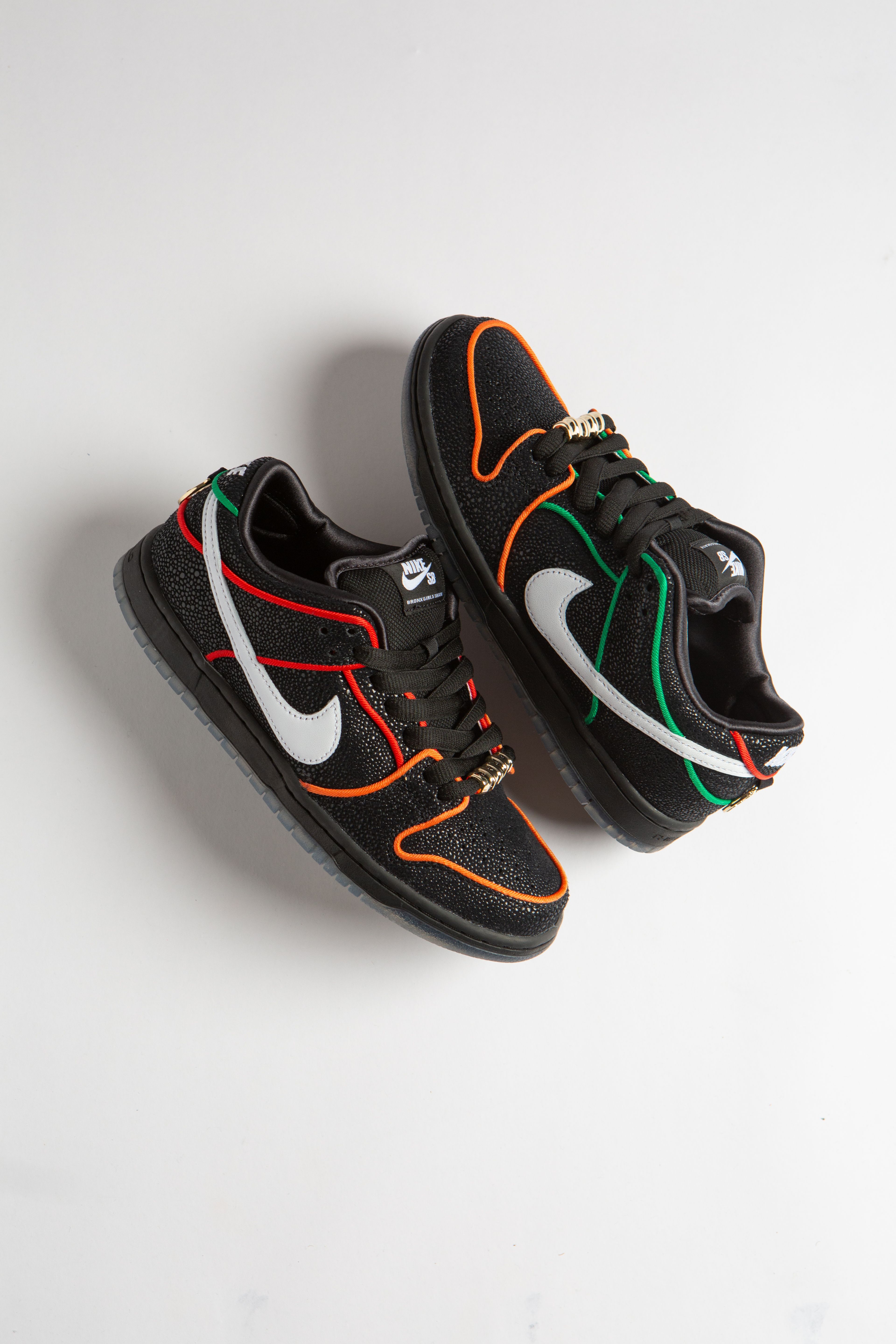 Created in 2020 by Mel Ramirez and Kava Vasquez to give the thriving women’s skate scene at River Avenue Skate Park their gold, Bronx Girls Skate’s grassroots approach continues to carve out new spaces throughout the city. For their first collaboration with Nike SB, the Bronx Girls Skate Dunk Low reinterprets the iconic colors of NYC transit with an Uptown homage to the Boogie Down.
