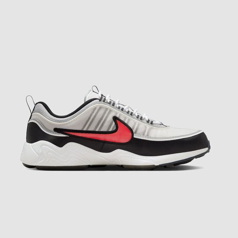 The iconic running silhouette is back and ready for the streets. Introduced in 1997, the Air Zoom Spiridon played a pivotal role in the evolution of Nike’s pressure-mapped designs built to improve cushioning for runners. This Metallic Silver version taps into the original with its reflective piping, airy mesh and Sport Red accents. Enjoy looking back and leaping forward with the Spiridon's bouncy, full-length Air Zoom cushioning beneath your feet.
