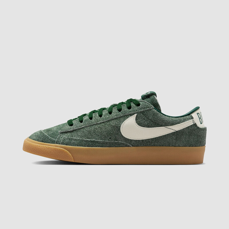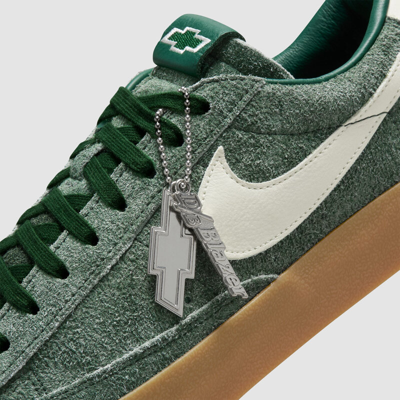 The Nike Blazer Low “Chevy” pays tribute to Booker’s classic ride with a rich green suede upper and gum outsole, evoking the look and feel of his iconic vehicle. A white Swoosh pops against the green, while the heel features “BOOK” embroidery—a nod to retro Nike player exclusives